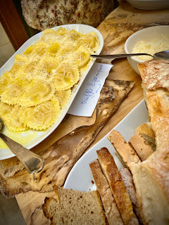 Je me réveille avec l'aube, la lumière depuis ma chambre est magnifique! Un oiseau — je crois que c'est une hirondelle, il y a un nid juste au-dessus de ma fenêtre — entonne un concerto matinal sonore et joyeux! Un petit coucou à Fabienne et je me prépare à rejoindre le groupe pour le petit déjeuner. Depuis le premier repas jusqu'au dernier, nous aurons droit à une nourriture délicieuse, variée, créative, des buffets de choix, des sauces à se relever la nuit, tout cela confectionné alternativement par Basia, Bertrand et Stephanie. Un plus remarquable!...
